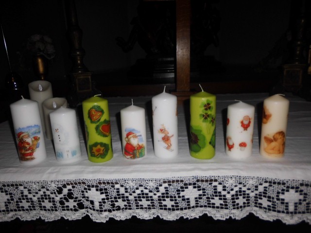 Unter anderen habe ich Kerzen mittels Serviettentechnik verschönert