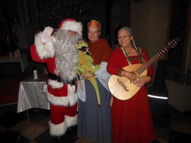 Gemeinsames Singen mit dem Nikolaus und Regine Weiß von den Pummelelfen