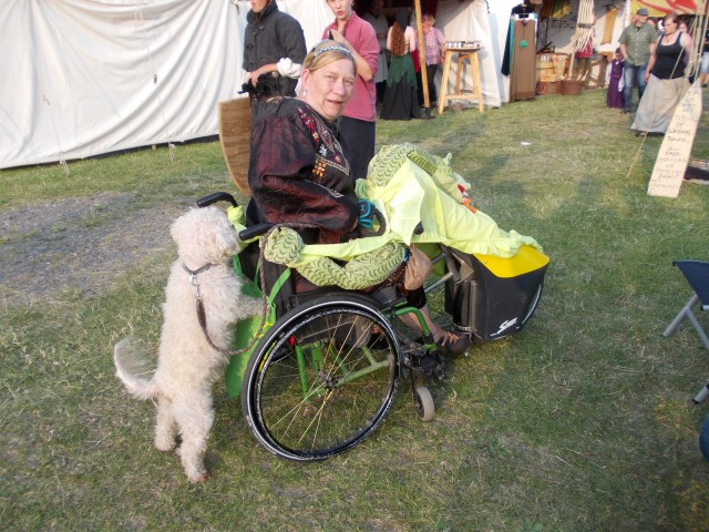 Willis Klugheit und sein Einfühlungsvermögen überraschen uns immer wieder. In Warendorf waren sehr viele Rollstuhlfahrer unterwegs, die alle geschoben wurden. Willi betrachtete sie sehr interessiert. Als diese Rollstuhlfahrerin zu uns kam, kamen wir ins Gespräch. Willi dachte sich wohl, dass sie im Rollstühl säße und niemand sie anschiebt. Also ging er hin, stellte sich aufrecht hinter den Rollstuhl und versuchte, sie anzuschieben. Willi ist ein faszinierender Hund - unser kleines Ein und Alles.