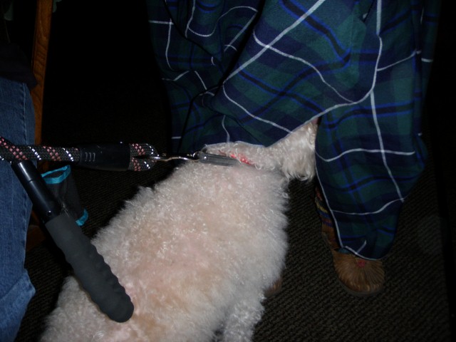 Willi hat sich vor lauter Scham über Lütters schlechtes Benehmen unter meinem Gewand verkrochen