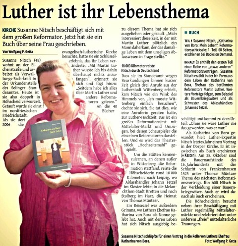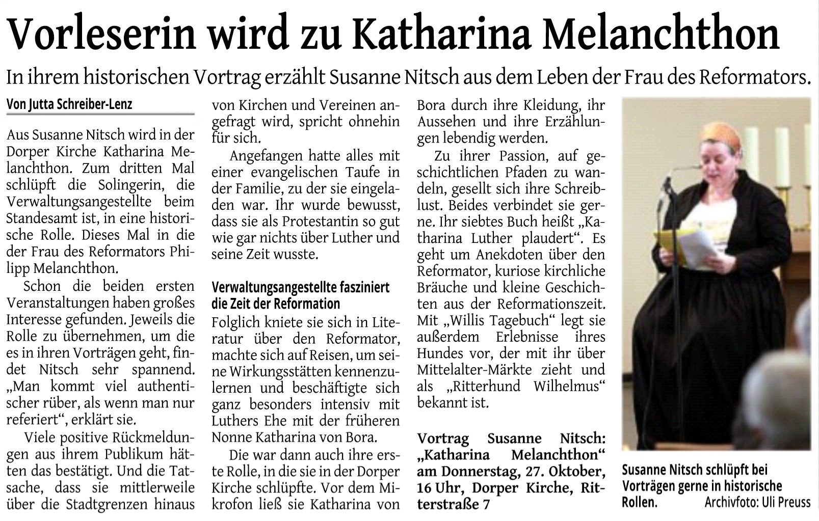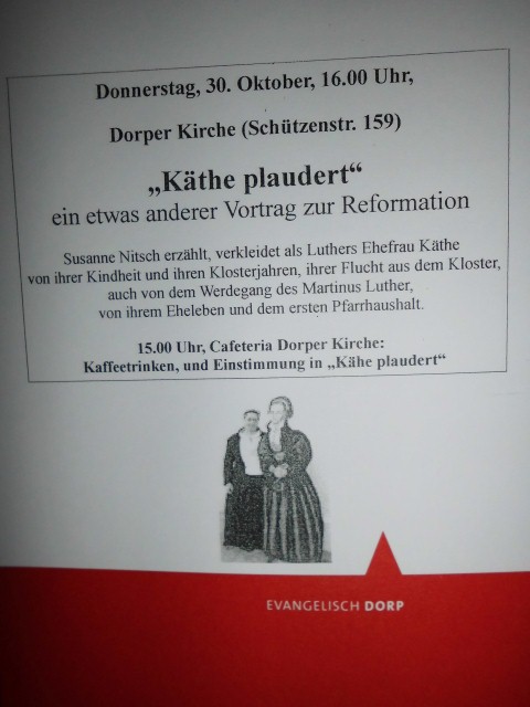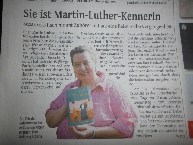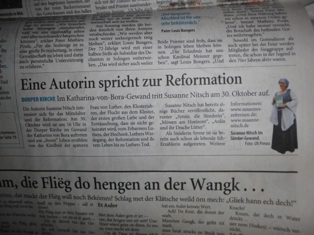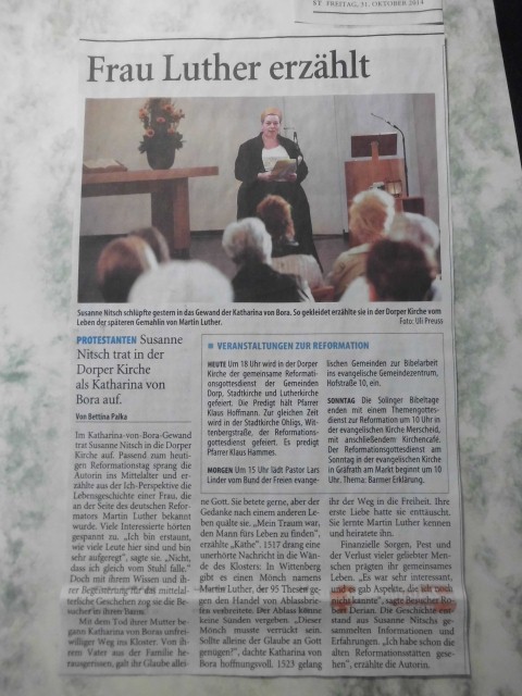 Zeitungsartikel zum Reformationsvortrag "Käthe plaudiert" in der Dorper Kirche: