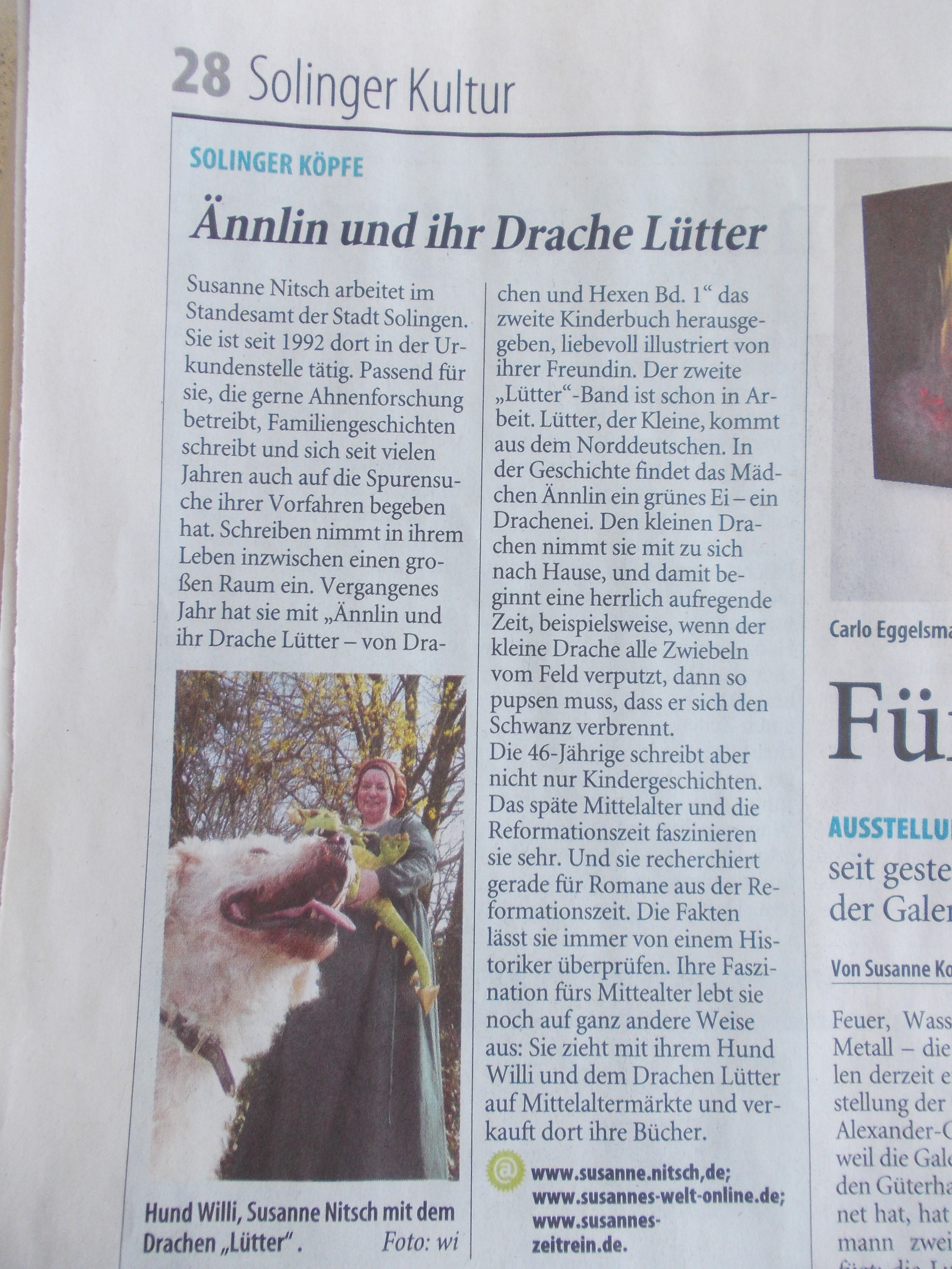 Am 20. April 2013 erschien dieser Zeitungsartikel im Solinger Tageblatt: